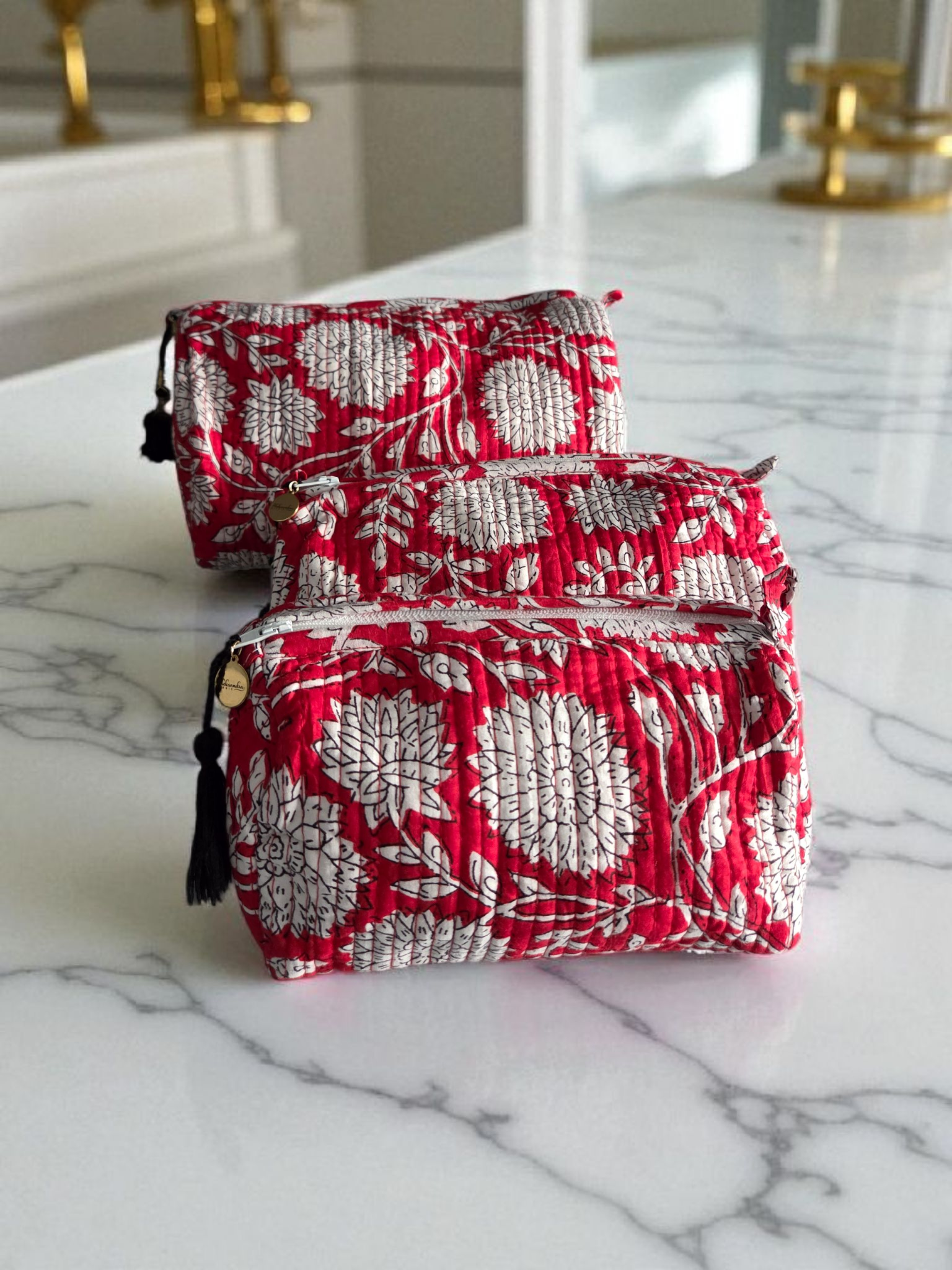 Alle drei Bags sind gesteppt und innen gefüttert, damit sie auswaschbar sind und ihre Form auch nach häufigem Gebrauch bewahren können. Sie sind ideal für Zuhause oder für unterwegs, sodass Sie stets gut ausgestattet sind.