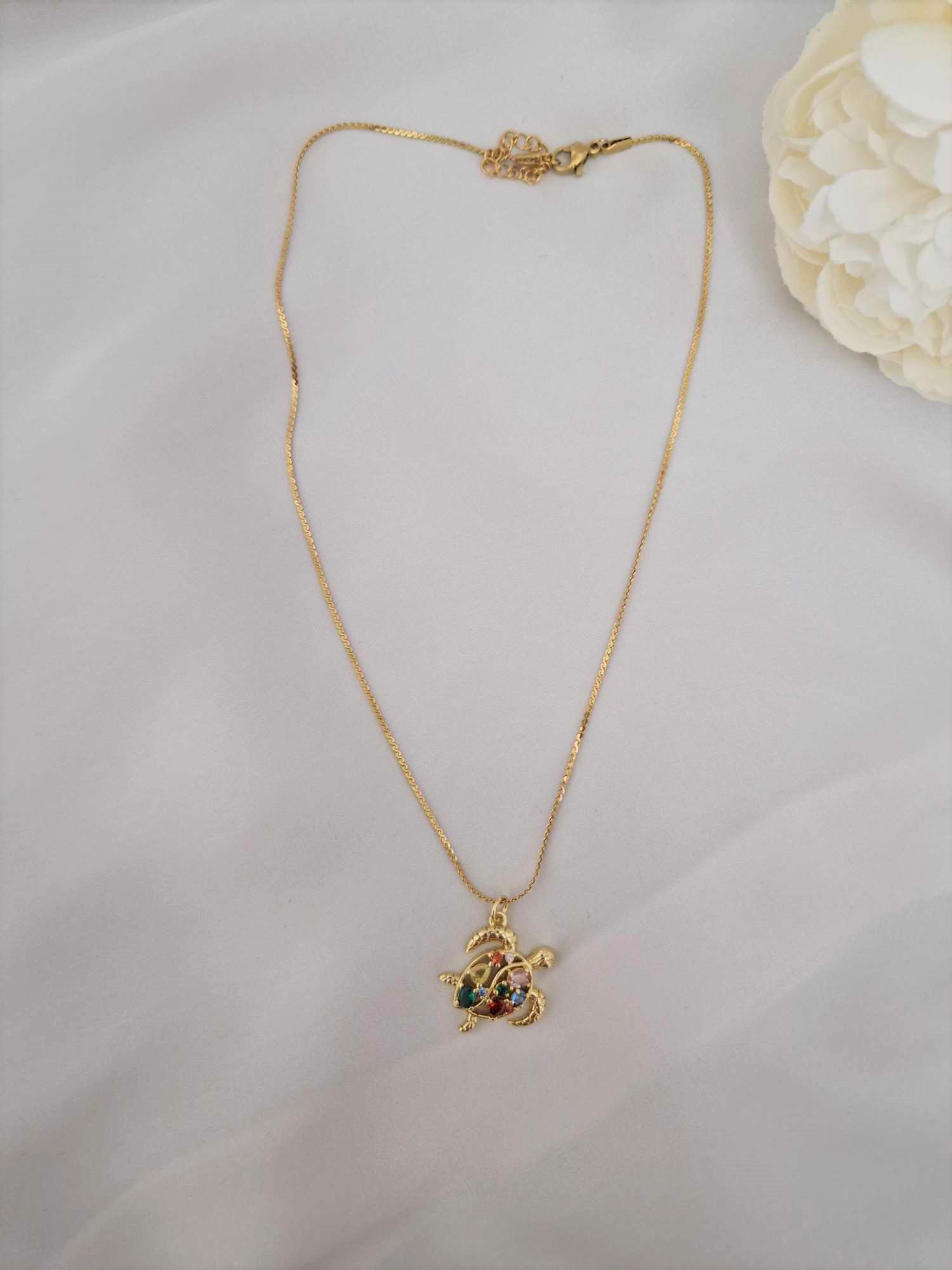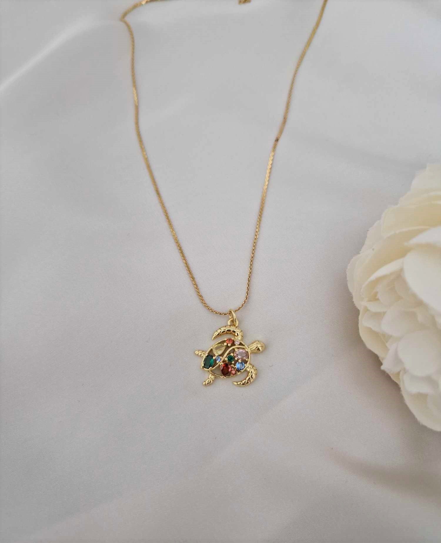 Diese zauberhafte Halskette wird schnell zu Ihrem täglichen Begleiter und Glücksbringer. Der beeindruckende Panzer der Schildkröte ist künstlerisch mit funkelnden Regenbogen-Zirkonia besetzt, die das Licht auf eine wunderbare Weise einfangen. Gefertigt aus hochwertigem Edelstahl, sorgt die 18k Vergoldung für einen eleganten und zeitlosen Look, der zu jedem Outfit passt. Mit einer Länge von 40 cm und einer praktischen 5 cm Verlängerung lässt sich die Halskette leicht anpassen und bietet so höchsten Tragekomfort. Ob als Geschenk für einen besonderen Menschen oder als Bereicherung für die eigene Schmucksammlung, diese Halskette ist eine wahre Freude und erinnert uns daran, das Glück in kleinen Dingen zu suchen.